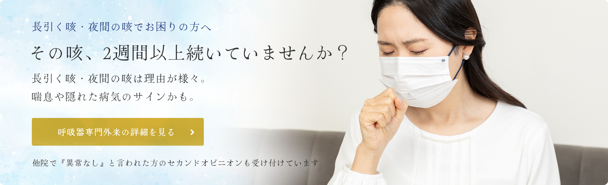当院では、呼吸器専門医が、喘息、COPD(慢性閉塞性肺疾患)、肺炎、気管支炎など、多岐にわたる呼吸器疾患の診断と治療を行います。
