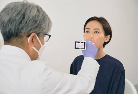nodocaの検査は、原則として6歳以上の方を対象としています。検査時には口を開けた状態を一定時間保つ必要があるため、安全に撮影が可能な年齢が基準とされています。適応については、医師が診察のうえ判断します。 - 口を大きく開けることができる方