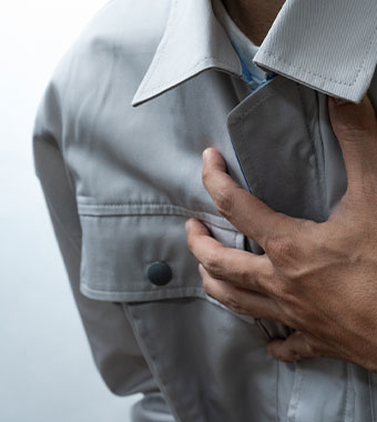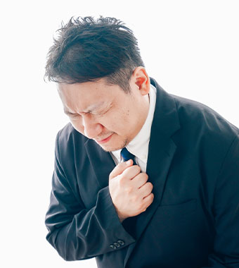 狭心症(きょうしんしょう)や心筋梗塞(しんきんこうそく)では、心臓の血管が狭まったり詰まったりすることで、胸の痛みとともに息苦しさを感じることがあります。